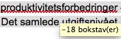 Avvik: Hvis det for eksempel finnes tilfeller med tre påfølgende perioder og fire påfølgende perioder i samme tekstblokk, får det første tilfellet gul understrekning. Rødt overstyrer gult hva gjelder fargen på indikatoren.